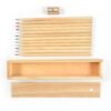 Set of 12 full sized sharpened natural coloured pencils in timber case with sliding lid.