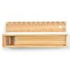 Unleash your creativity with the Radiata Colouring Set featuring unpainted wood pencils, a sharpener, and eraser in a natural wood box. Customise with a Pad Print decoration option on the ruler lid.