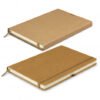 Unique notebook with a hard cover which is manufactured from recycled leather, giving the notebook a textured finish and a natural look. The notebook is presented in an unbleached cardboard sleeve and has 80 pages (160 leaves) of 70gsm lined cream paper with a date grid printed on each page. Other features include a bookmark ribbon, an elastic band closure, a pen loop and a recycled leather icon on the back cover.
