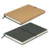 Unique notebook with a soft cover which is manufactured from recycled leather, giving the notebook a textured finish and a natural look. The notebook is presented in an unbleached cardboard sleeve and has 80 pages (160 leaves) of 70gsm lined cream paper with a date grid printed on each page. Other features include a bookmark ribbon, an elastic band closure and a recycled leather icon on the back cover.