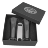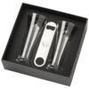 Two piece Pilsner glass set with opener. Supplied in a classy two part black gift box with foam insert. 350ml capacity.