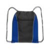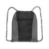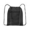 Premium drawstring backpack with a large zippered front pocket. It is manufactured from 210D polyester and has reinforced eyelets at the base for added strength.