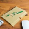 Unbleached cardboard cover (600gsm) spiral bound notebook with Matador Pen.