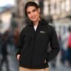Versatile women’s 340gsm, long sleeve softshell jacket which is manufactured from a blend of polyester and elastane which is wind-resistant and has a waterproof rating of 8,000mm (waterproof in light conditions). The jacket has triple-layer insulation with a cosy fleece lining, and it is designed as smart outdoor casual wear for all seasons. It has a full zippered front which extends to include the high collar, a hood with a drawstring, two zippered side pockets which double as hand warmers, one large internal zippered pocket and one zippered chest pocket. Other features include a longer back panel, adjustable cuffs with a self-gripping fastener and an adjustable elastic waist closure for additional warmth. Replay is a European fit and is available in six sizes.