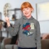 Versatile 280gsm fleece-lined kid’s hooded sweatshirt which is manufactured from a 50/50 blend of ring-spun cotton and polyester with ribbed elastane on the hem and cuffs. It has set in sleeves and a large kangaroo pocket on the front. The brushed fleece lining gives the garment a soft and cosy feel while adding extra warmth. It is a European fit and is available in five sizes.