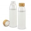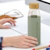 Elegant 500ml borosilicate glass drink bottle which features a protective soft-touch silicone sleeve and a secure screw on natural bamboo lid. Borosilicate is a lightweight glass that is exceptionally strong and shatter-resistant. Glass is a natural choice for a clean, pure taste and is a safe and reusable alternative to single-use plastic. Solstice is BPA-free and is presented in a white box. Bamboo is a natural material which produces unavoidable variances in the grain pattern, colour and branding. This product is not dishwasher safe and handwashing is recommended.