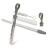 Reusable stainless-steel straw with a removable silicone mouthpiece and cleaning brush. The straw telescopically folds down to fit inside its own clear carry tube which seals shut with a silicone stopper. This has an adjustable loop so the carry tube can be attached to a key ring or bag. Reusable straws are an environmentally-friendly alternative to single-use plastic straws and are a great way to send a positive message. Branding is on the case.