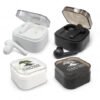 Tempo Bluetooth Earbuds: Enjoy crystal-clear stereo sound and hands-free calls with these precision earbuds. Compact case with built-in power supply. Available in black or white. Decoration options: Pad Print, Direct Digital.