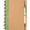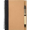 Spiral notebook with matching ballpoint pen. Includes 60 ruled pages and matching color elastic pen loop. Pen imprint not available. Pens packed separately.
