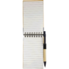 Jotter features recycled cover. Includes matching recycled barrel ballpoint pen. Elastic band closure and pen loop. 60 white lined pages. Pen imprint not available. Pens packed separately.