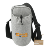 The Traver RPET adjustable bottle sling cooler w/ Pouch provides convenient, hands-free carrying for drinkware bottles. The insulated cooler liner helps keep your beverages cold while preventing condensation on sport bottles. An integrated toggle holds drinkware in place while inside the pouch. The zippered pocket features a built-in card organiser as well as elastic bands to store your accessories.
