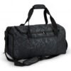 Camouflage duffle manufactured from 300D polyester. It has a sturdy zippered main compartment and front pocket, a slip pocket on one side and a ventilated shoe storage compartment on the other. The duffle has an adjustable shoulder strap and carry handles with a velcro cuff.