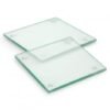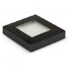 Set of two square glass coasters in a stylish black gift box with a window to show off the brand. The coasters have four non-marking polyurethane pads on the base. The branding is on the underside of the coaster and handwashing is recommended.