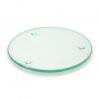 Round glass coaster which is presented in a smart cardboard sleeve. It has three non-marking polyurethane pads on the base. Handwashing is recommended.