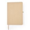 Natural cover A5 notebook with neutral colour elastic strap, pen loop and page marker.