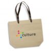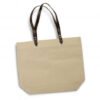 Classic 15L tote bag which is manufactured from 250gsm natural linen with brown leather-look PU long carry handles.