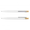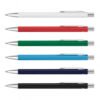 Retractable ballpoint pen with a recycled aluminium barrel featuring a matte lacquered finish and shiny chrome trim. It has a black refill with 1200 metres of German manufactured Dokumental ink. A recycled symbol is engraved on the barrel.