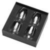This set of four wine glasses comes beautifully boxed in a black two pieces gift box with foam insert. 450ml capacity.