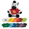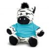 Soft zebra plush toy with embroidered eyes and a polyester t-shirt which is available in eleven colours. Plush animals provide a cute and cuddly branding option and are great for brand recognition and spreading goodwill. They have also been manufactured to meet AS/NZS Safety Toy Standards.